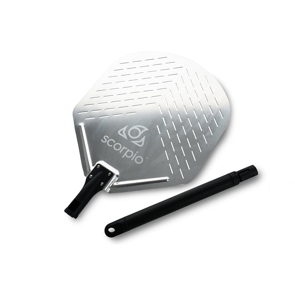 The Scorpio Peel is a top-of-the-line anodized aluminum pizza peel. Its lightweight, perforated surface is designed to make sliding under a pizza a breeze. It features a clip-mounted durable handle allowing for easy transportat...